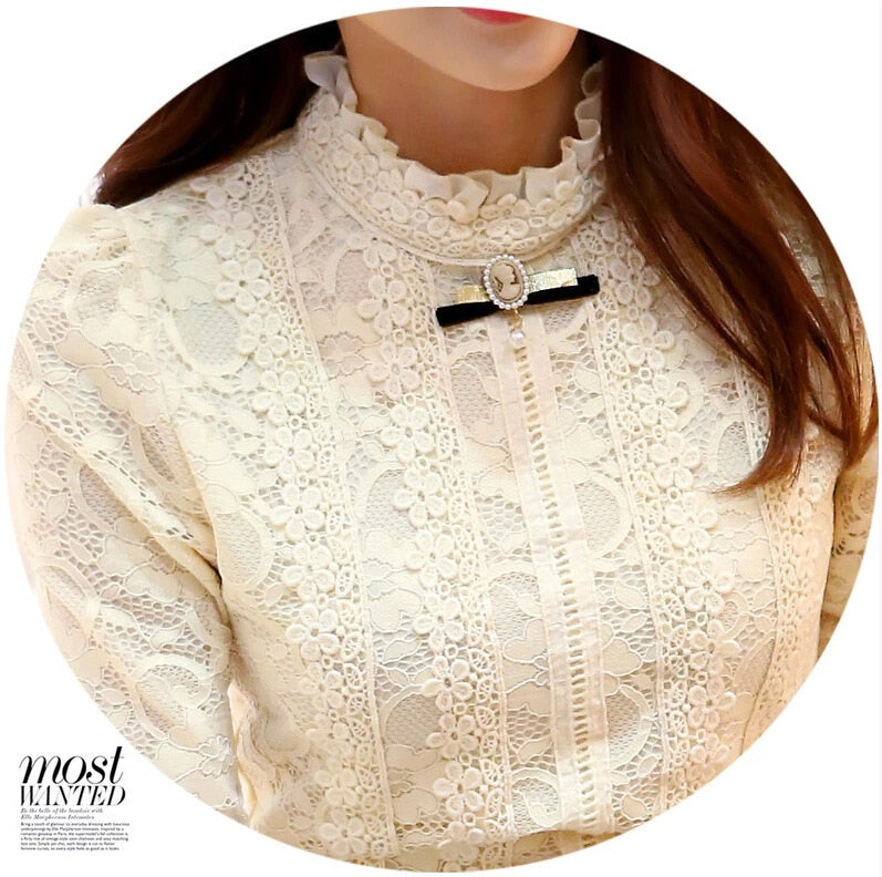 Spring New Hot Women Tops Women Clothing Fashion Blusas Femininas Blouses & Shirts Fleece Women Crochet Blouse Lace Shirt 999