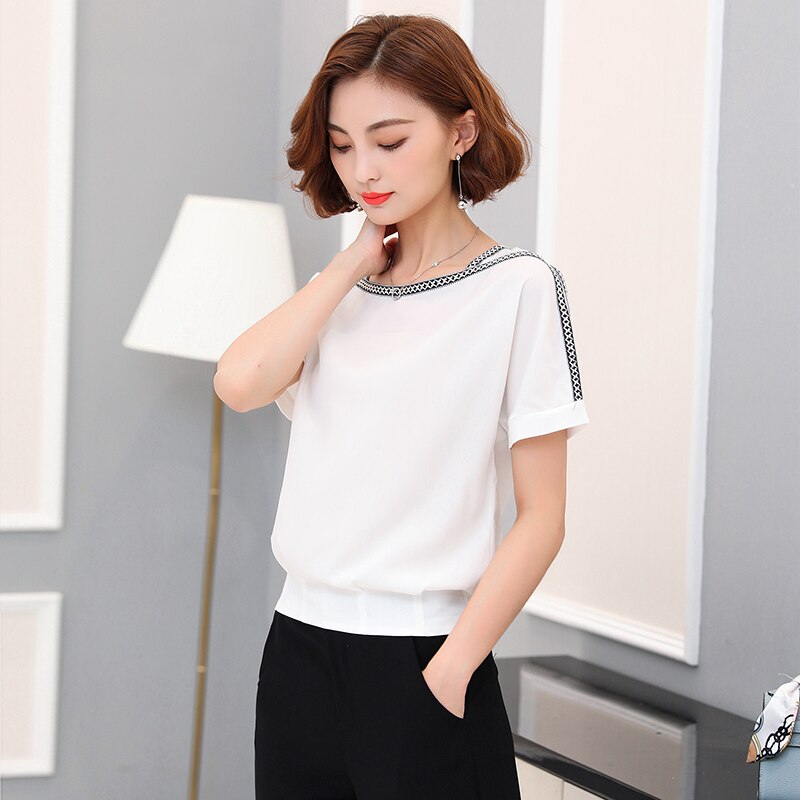 summer new 2020 chiffon women blouse shirt causal plus size short sleeve women tops solid white red yellow color blusas 0370 30