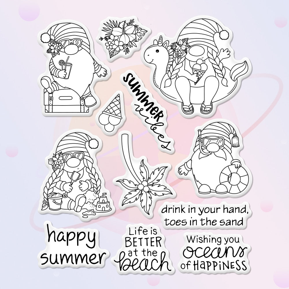 Summer series Cutting Dies Clear Stamp Palm Beach Swimming Gnome DIY Scrapbooking Embossed Stencil Decor Metal Dies Stamps