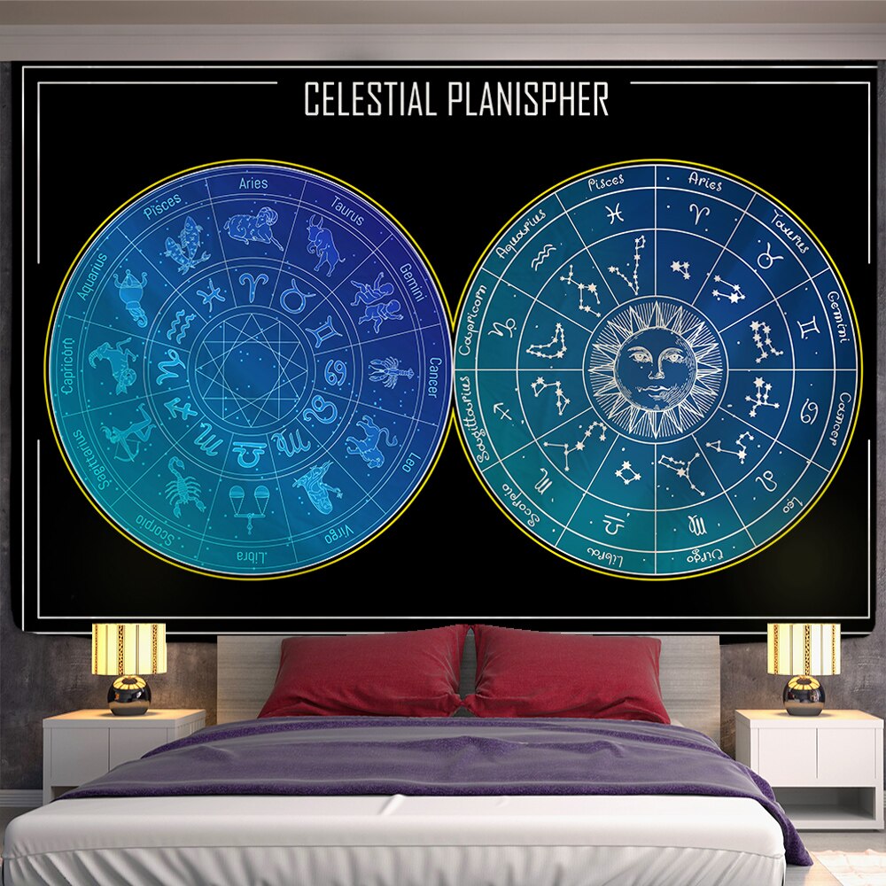 Sun Constellation Compass Mandala Tapestry Wall Hanging Celestial Wall Tapestry Hippie Wall Carpets Dorm Decor Psychedelic Tape