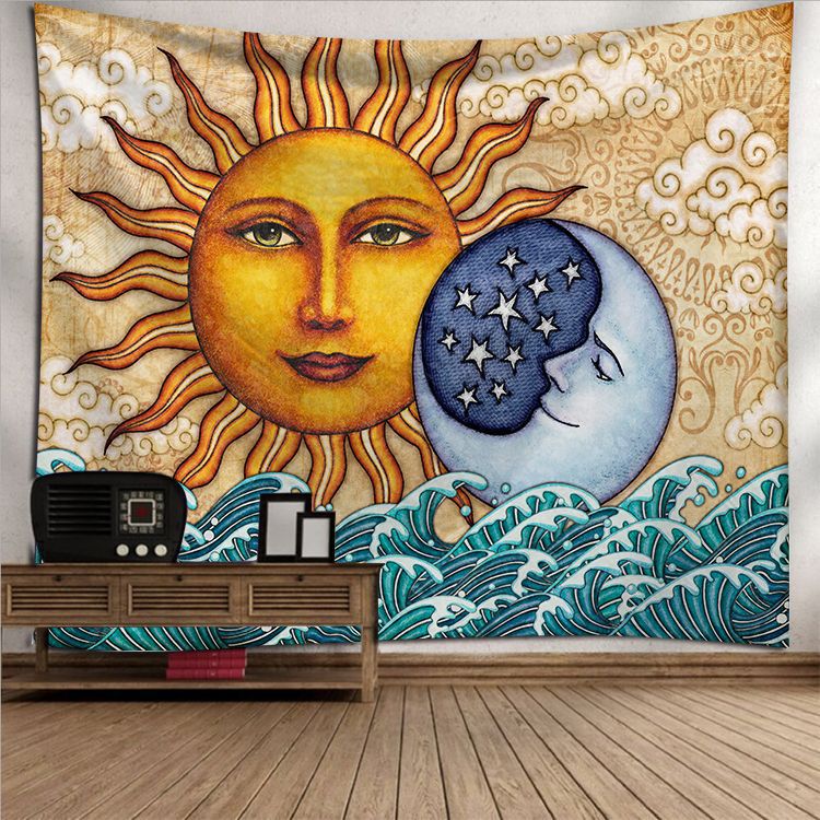 Sun Moon Mandala Tapestry Wall Hanging Celestial Wall Tapestry Hippie Wall Carpets Dorm Decor Psychedelic Tapestry