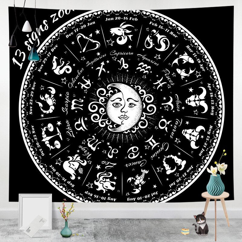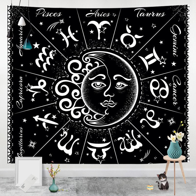 Sun Moon Mandala witchcraft Tapestry White Black Wall Hanging Bohemian Gypsy Psychedelic Tapiz Witchcraft Astrology Tapestry