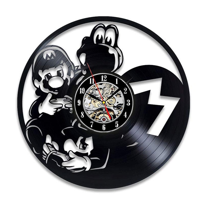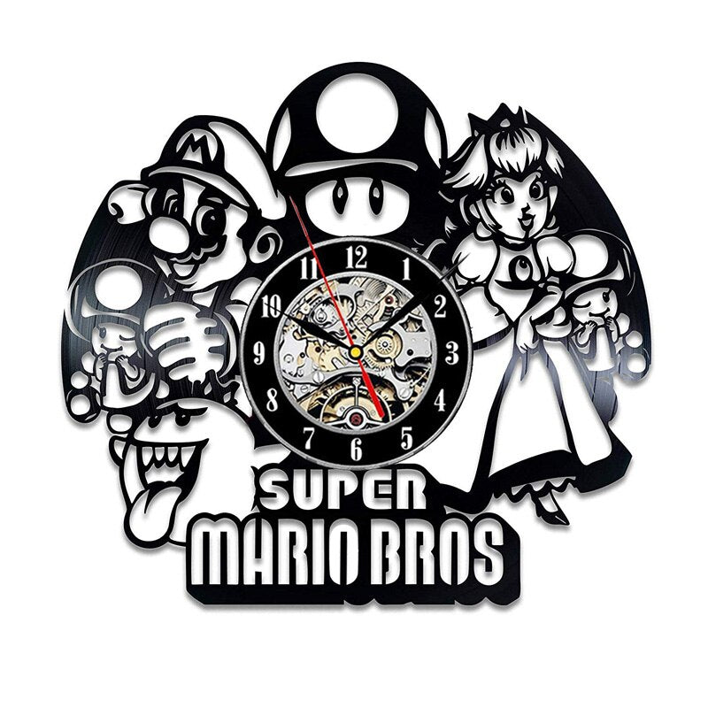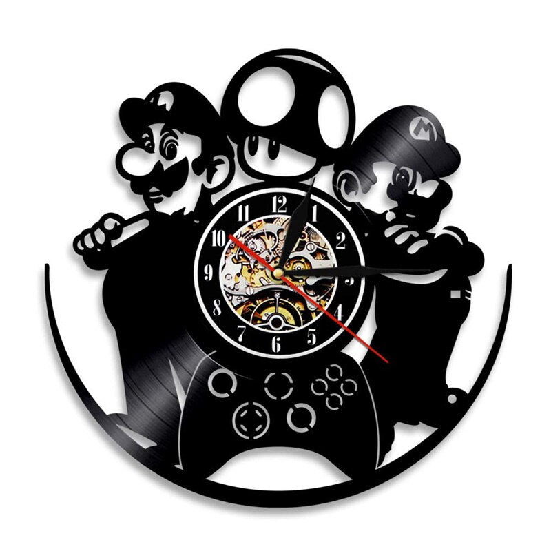 Super Mario Game Vinyl Record Wall Clock Modern Design Play Room 3D Hanging Clock Wall Watch Art Home Decor Gifts for Children