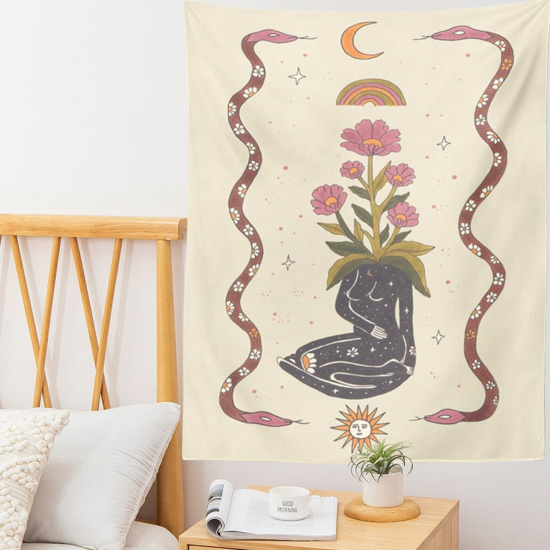 Tarot Card Tapestry Astrology Divination Witchcraft Sun Moon Goddess Sun Moon Star Wall Hanging Decor plant flower Tapestry