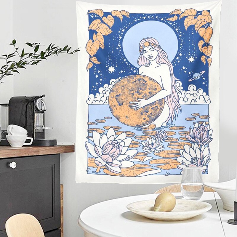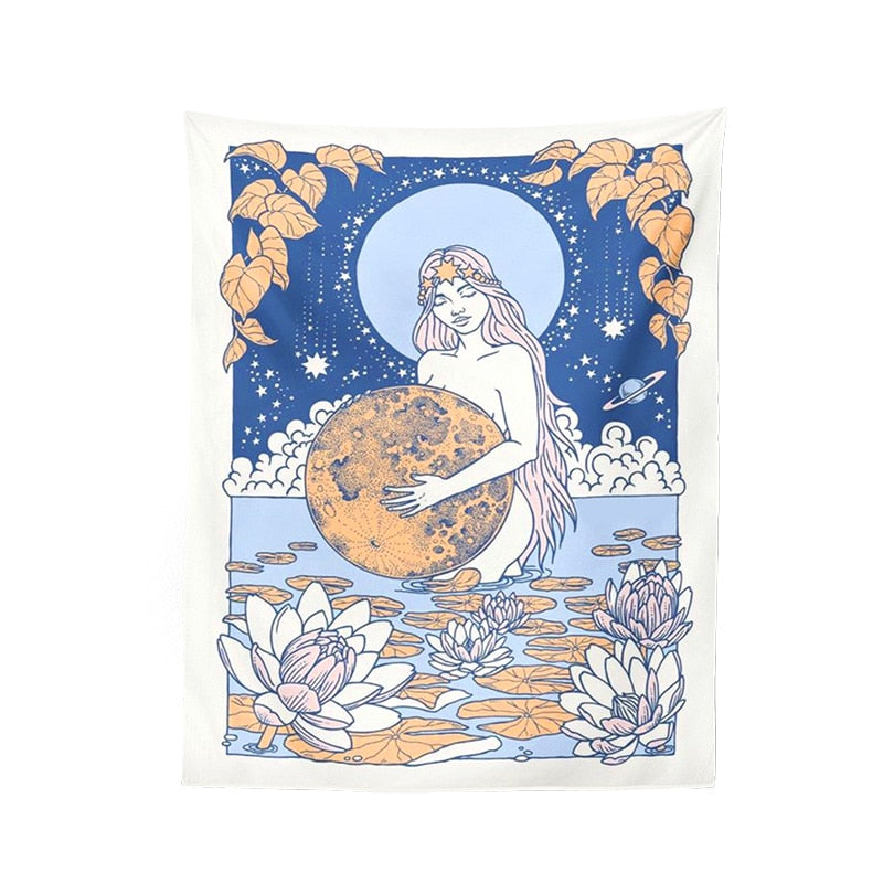 Tarot Card Tapestry Old Vintage Tapestries Witchcraft Astrology Star Moon Nymph Mermaid Goddess Sea Bed Decor Blanket Wall Cloth
