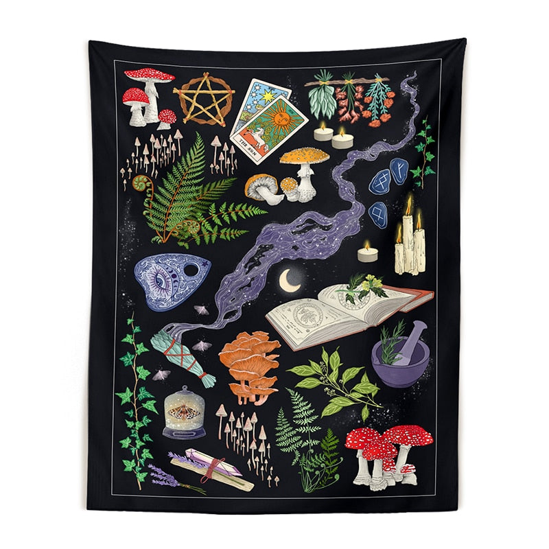 Tarot Mushrooms Tapestry Wall Hanging Moon Starry Botanical Chart Hippie Bohemian Tapestry Psychedelic Witchcraft Home Decor