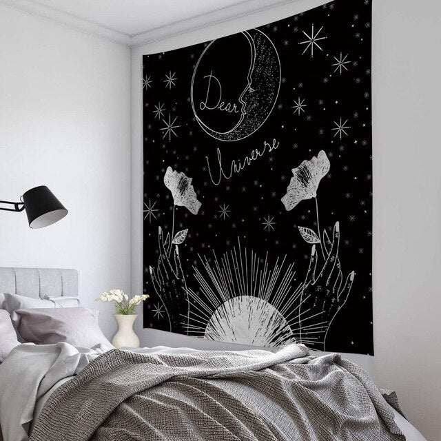 Tarot Sun moon Tapestry Watercolor Wall Hanging The Moon Wall Tapestries Black and White Bohemian Wallpaper The Star Wall Decor