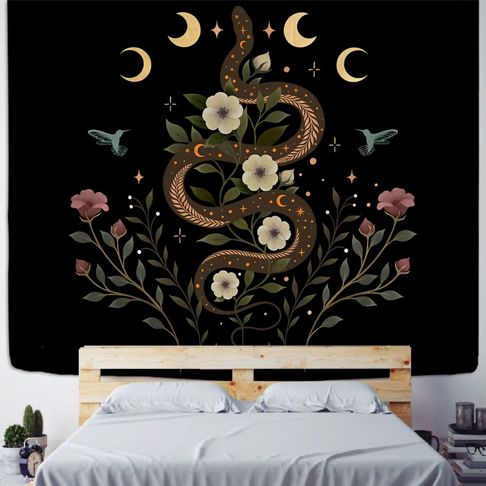 Tarot Tapestry Wall Hanging Astrology Sun Moon Goddess Star Plant Flower Bohemian Witchcraft Home Decor