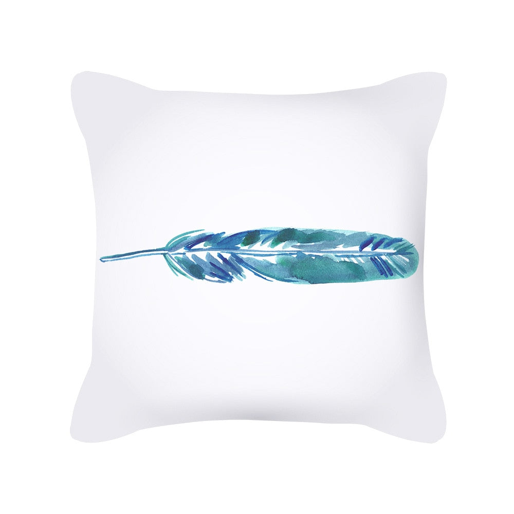 Teal Blue Cushion Cover Leaves Geometric Heart Pillow Cover Sofa Home Decor Throw Pillows Car Decorative Pillow Case Accessories