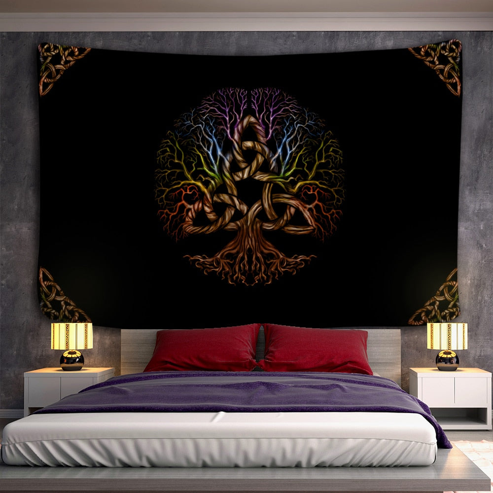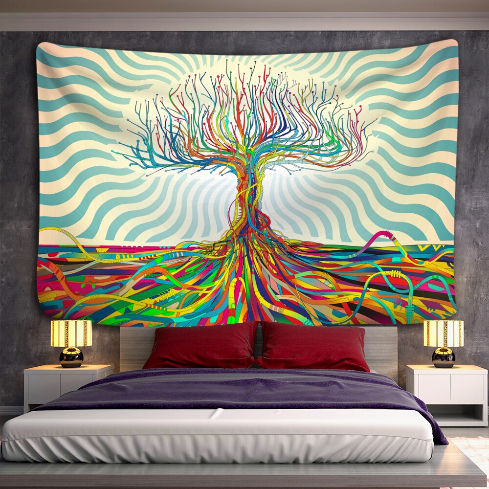 Tree of life Mushroom Forest Tapestry Wall Hanging Fairy Tale Castle Skeleton Bohemian Psychedelic Home Dormitory Dream Decor