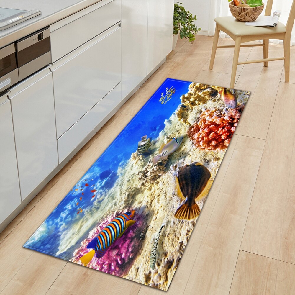 Underwater world Kitchen Mat Entrance Doormat 3D Pattern Bedroom Home Floor Decoration Living Room Carpet Bathroom Anti-slip Rug