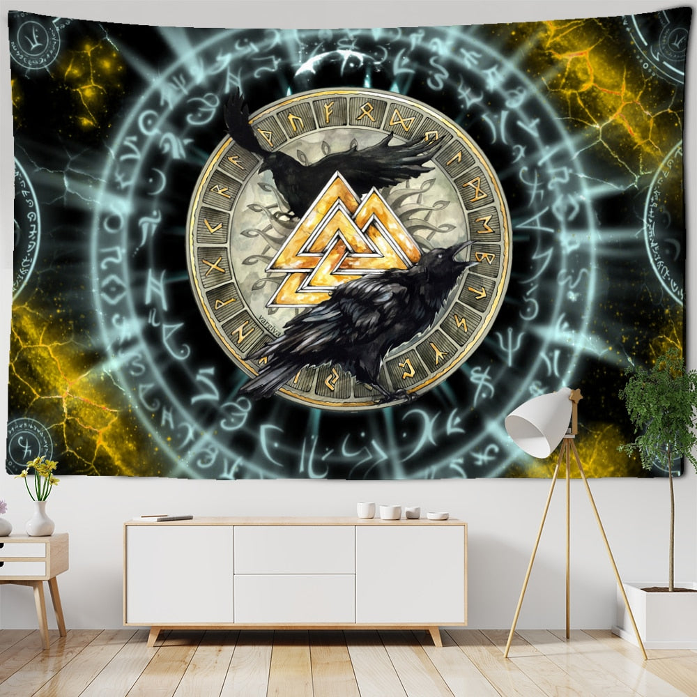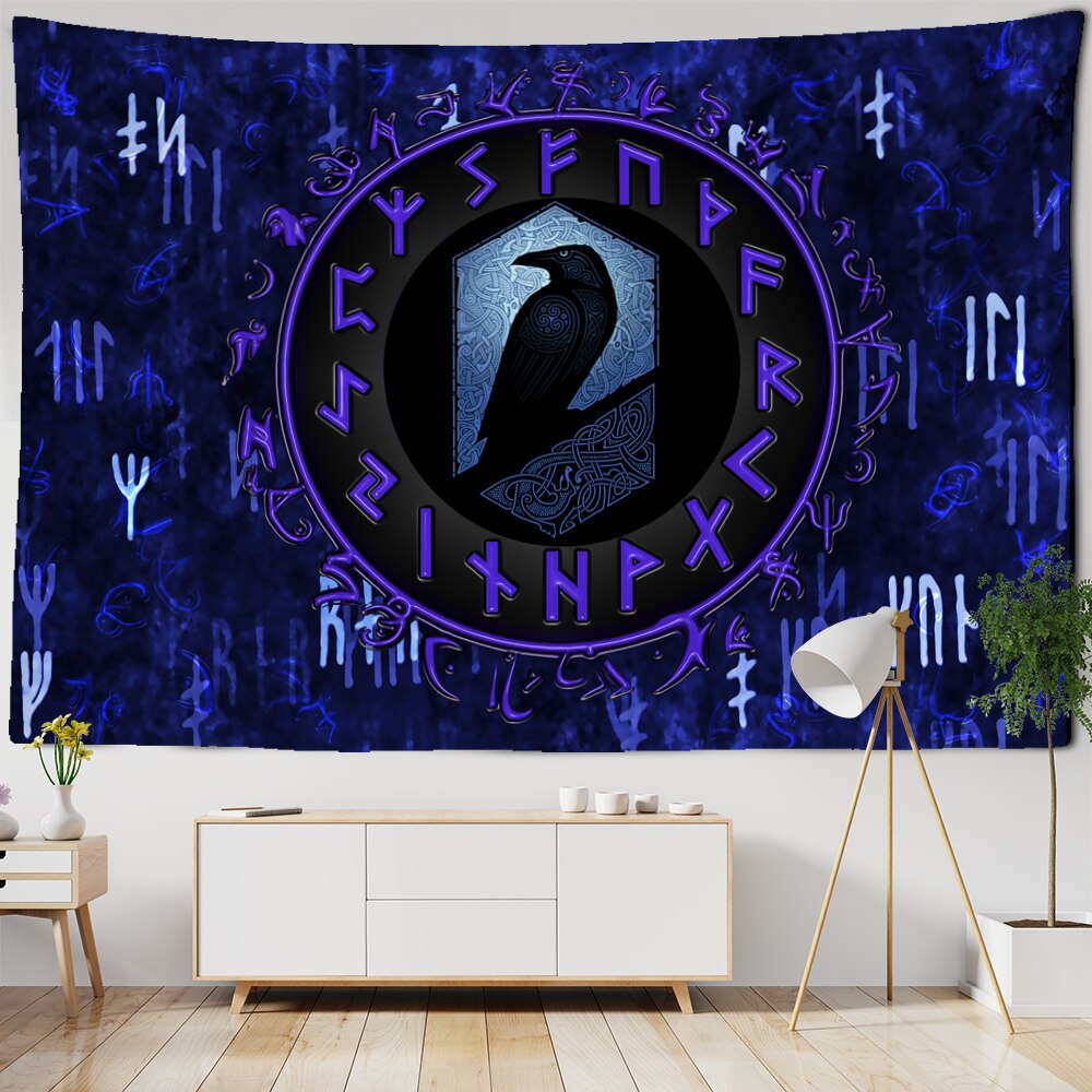 Vikings Tapestry wall Raven Mysterious Meditation Psychedelic Runes Art Wall Hanging Tapestries for Living Room Tarot Sun Moon