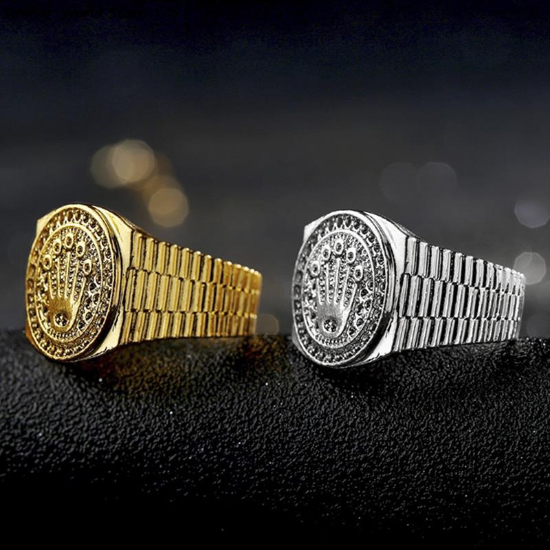 Vintage Hip Hop Gold Crown Ring Men Women Engagement Wedding Party Rings Jewelry 2 Colors