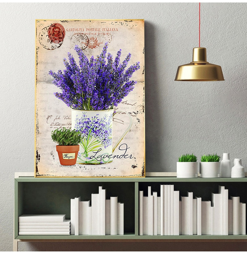 Vintage Purple Lavender Canvas Painting Provence Scenery Wall Art Poster Oil Picture For Home Decor Living Room Picture