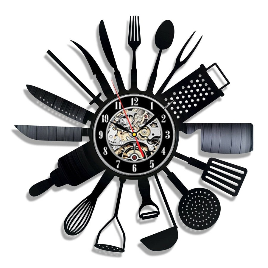 Vinyl Record Wall Clock Modern Design Decorative Kitchen Knife and Fork Kitchen Hanging Clocks Wall Watch Home Decor Silent