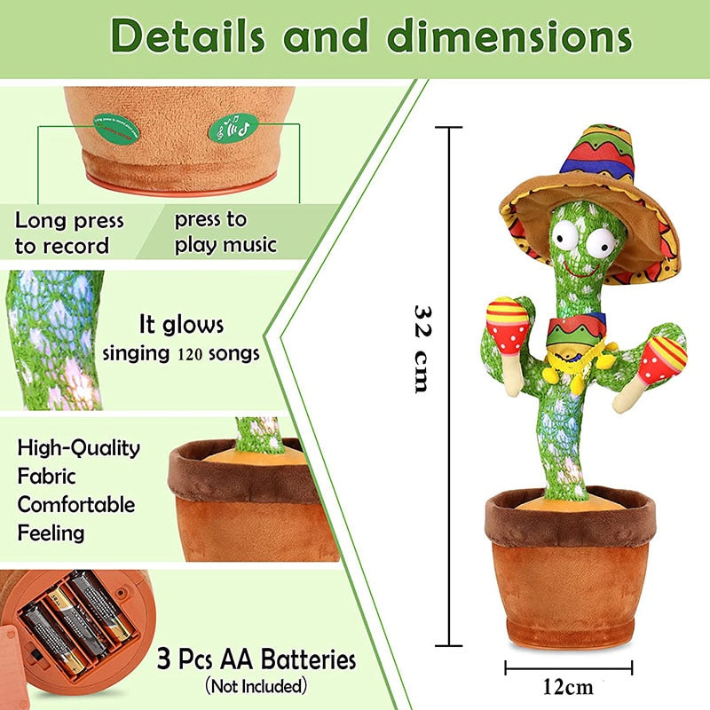 Voice Repeater Dancing Cactus With Sound In Spanish Captus Dancer For Babies Dancing Cactus Toys Speak Dance Russian Song