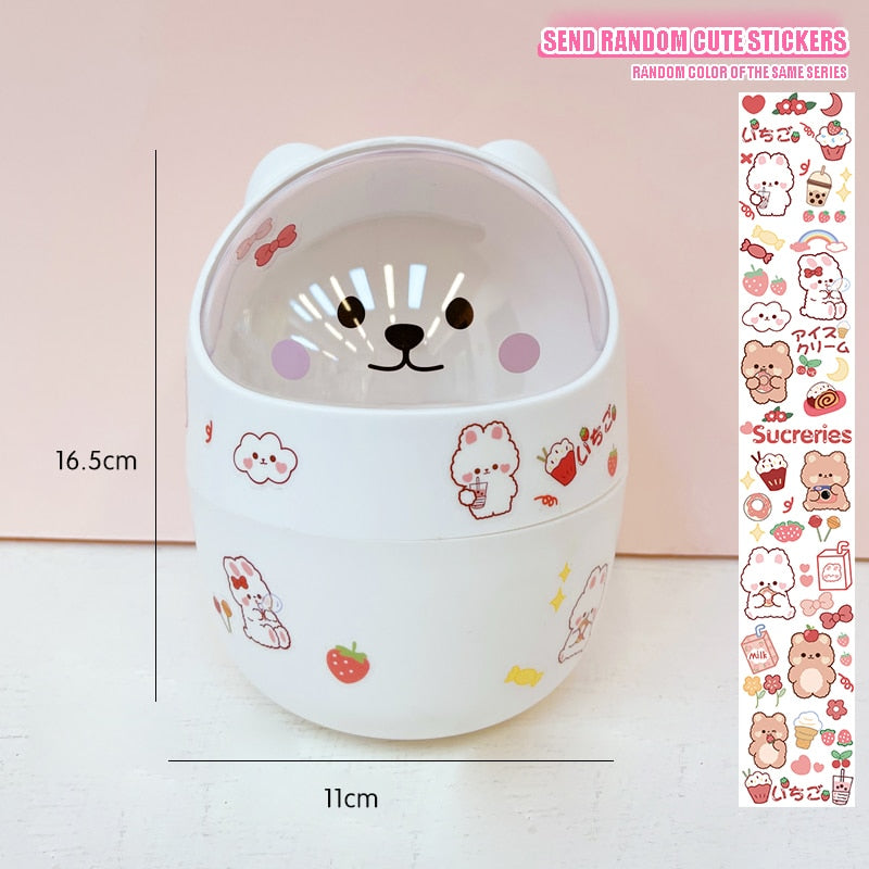 W&G Ins Desktop with Lid Trash Can Mini Kawaii Cute Bear Trash Bin Storage Box Girl Pen Holder Storage Bucket with Flip Top