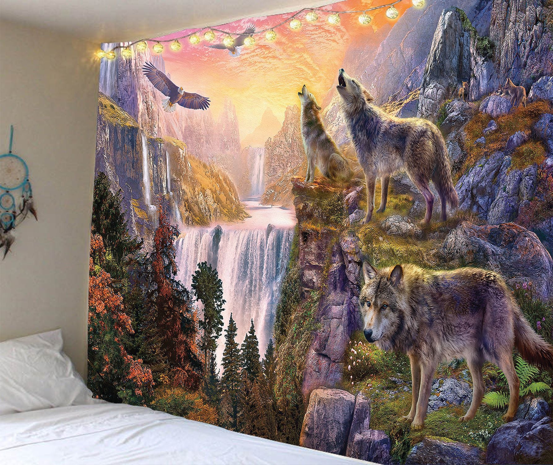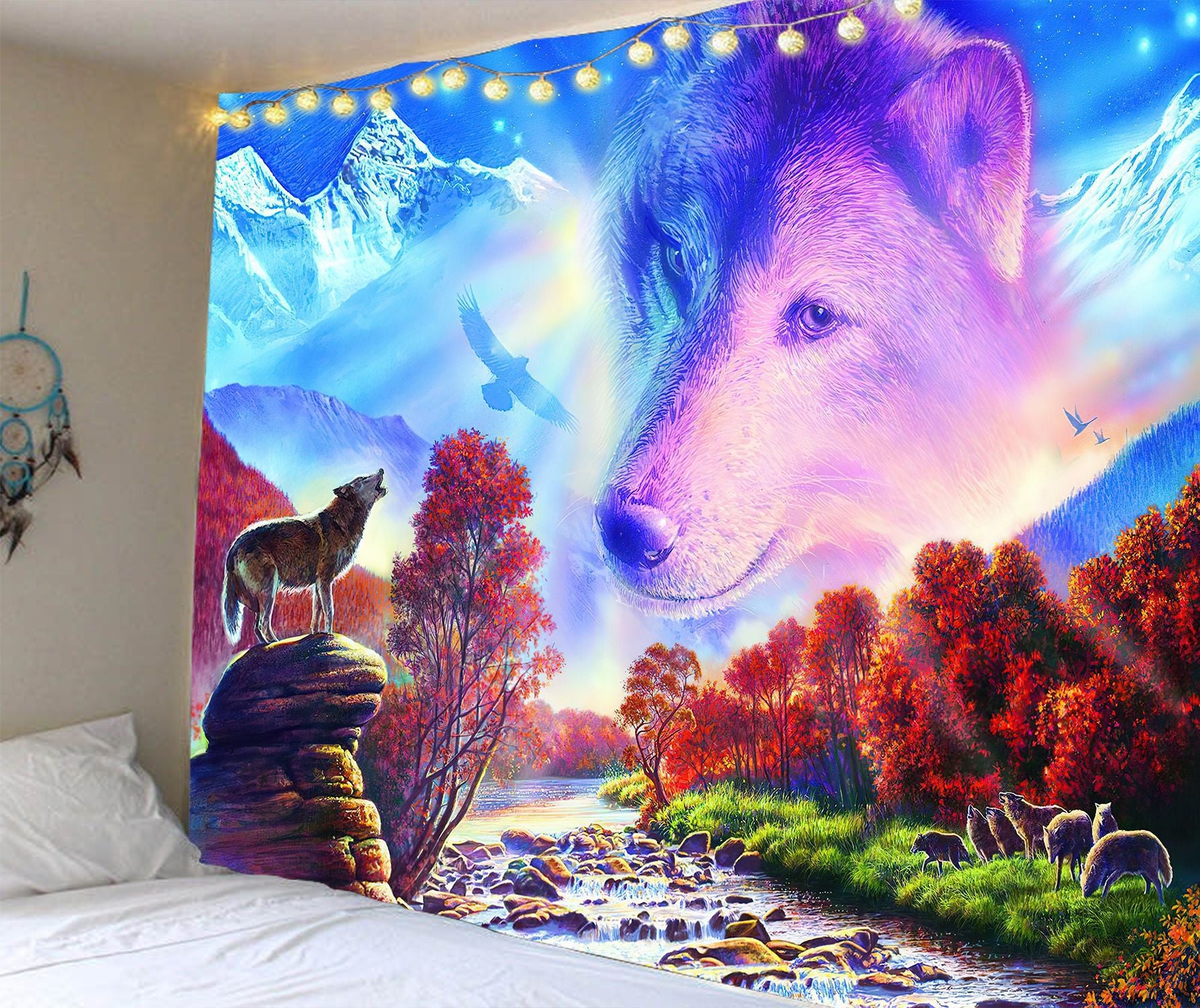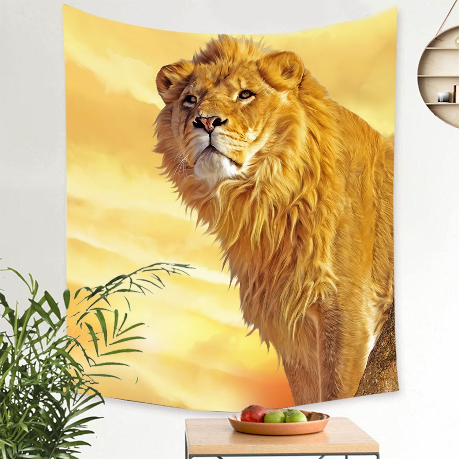 Wall Hanging Tapestry Livingroom Wall Cloth Lion King Wolf Background Cloth Tiger Wall Tapestry Aesthetic Animal Hanging Blanket