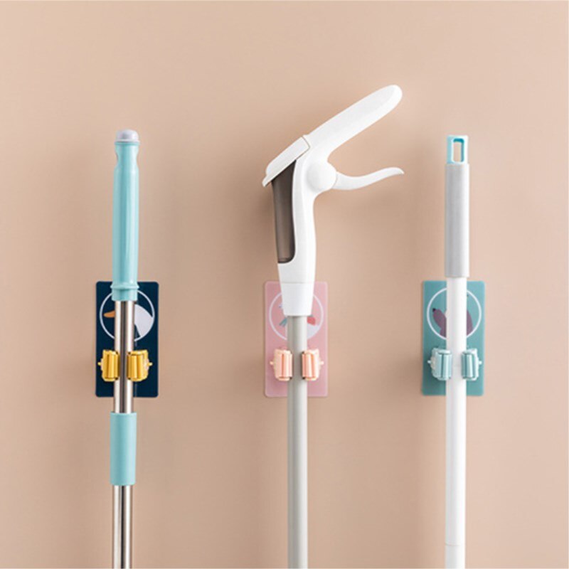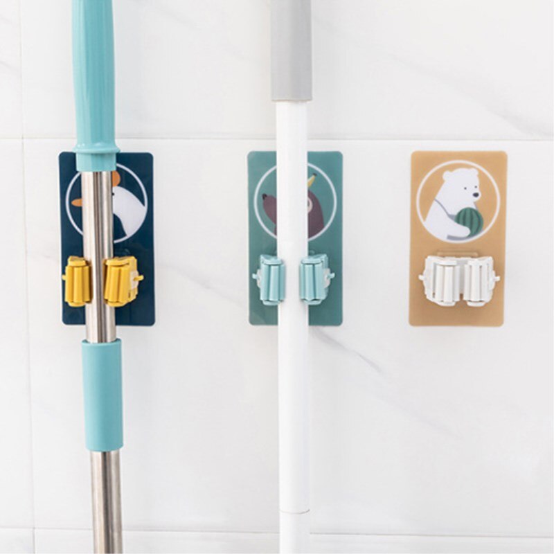 Wall Mounted Bathroom Hooks Cartoon Mop Holder Brush Broom Hanger Organizer Storage Rack Household Kitchen Hanging Cleaning Tool