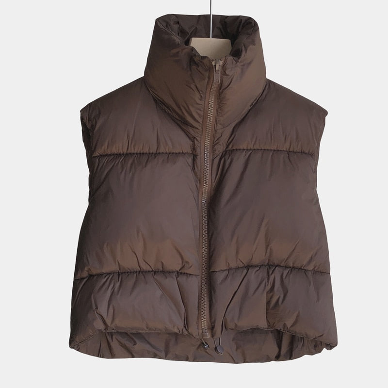 Women Vests Sleeveless Jacket Witner Parkas Waistcoats Women Casual High Collar Down Vest Female Outerwear Short Cotton Top